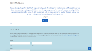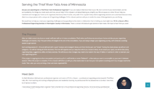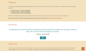• I had been struggling with my marketing for my organizing business for a while now. When I found Sara on the internet it was such a blessing! She guided me along the way with new name and logo choices and all the things that I need to build a better brand. I really love my new website that Sara designed. She was very responsive, always attending to my questions and any issues or concerns that I had were addressed promptly. I also enjoyed getting her opinions and guidance on day-to-day business aspects, as she has a wealth of experience and I love to learn.